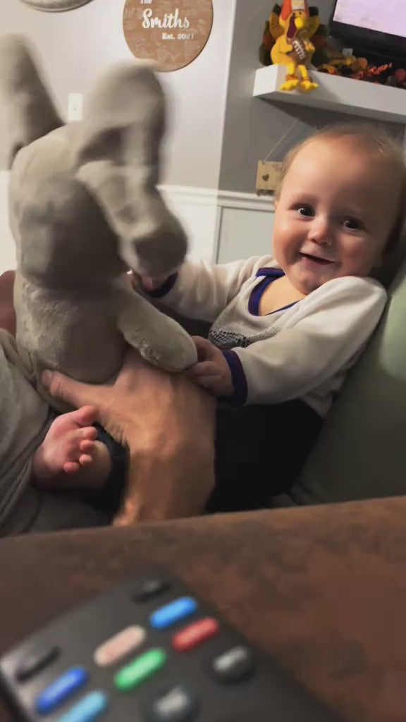 Our cuddly singing elephant is perfect for little ones aged 6 months and up! It’s designed to be a cherished companion through their early years, fostering smiles and comfort.